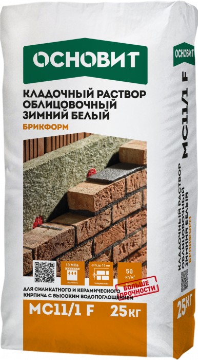 • БРИКФОРМ MC11/1 F зимний кладочный раствор (белый) для облицовочного кирпича ОСНОВИТ